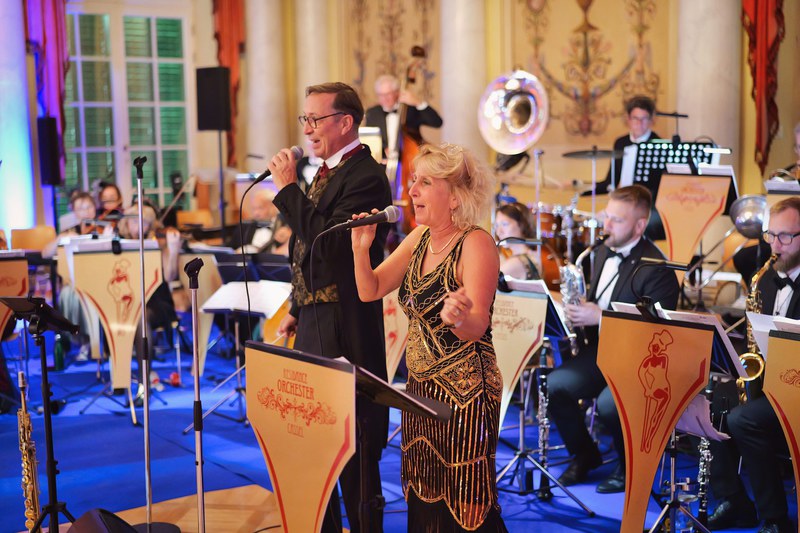 Die erhabene Umgebung mit einzigartigem Ambiente, die eleganten Tänzer und ein freudiges Publikum verwandelten den rauschenden Schlossball im Ballhaus Wilhelmshöhe in Kassel in ein magisches Ereignis.