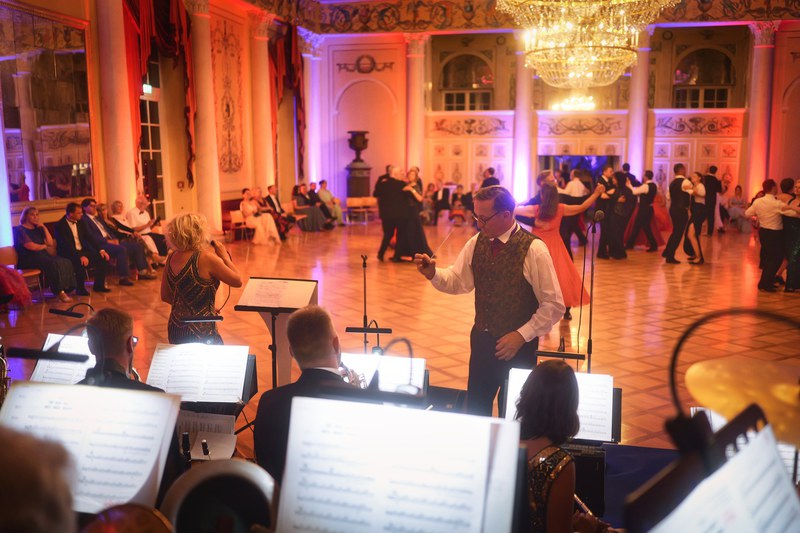...gemeinsam entstehen lebendige Momente voller Freude und Energie. Wir haben den Schlossball mit den unterschiedlichsten Tänzen, vom Walzer über Cha-Cha-Cha bis zum Tango, gemeinsam mit Künstlern musikalisch gestaltet und dem Publikum mit unserem umfangreichen Repertoire einen abwechslungsreichen Abend bis tief in die Nacht geboten.