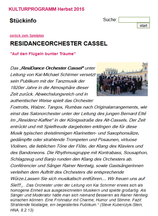 Kritik des Auftritts im Piazza Kulturprogramm Herbst 2015